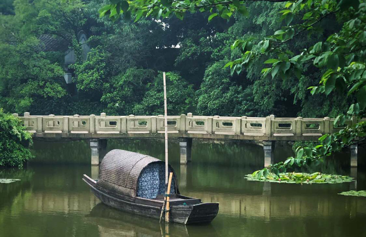 在大片湖水的輝映下,蜿蜒小溪,曲橋清流,別有情趣。前有方亭,位于荷花叢中,因而亭上懸藕花深處匾額。堂前水中立一湖石,亭亭玉立,若面拂輕紗,身披蟬翼,翩翩有神。對面有凈香水榭牡丹塢。這里建筑疏密有致,濃淡相宜,我們觀察了浩渺雄渾的太湖,又覓得如此幽靜的古典園林小區,頓覺怡然自得。