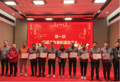 為樹立標桿,表彰、激勵在2021年工作中做出貢獻的集體和個人,金宇機電黃巖廠區及臺州灣廠區舉辦了2021年度優秀員工表彰大會,這既是一個先進工作表彰會,也是一個振奮精神、調整狀態的收心鼓勁會。