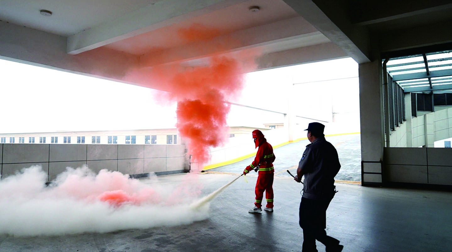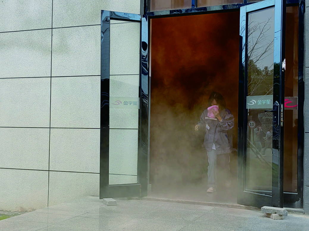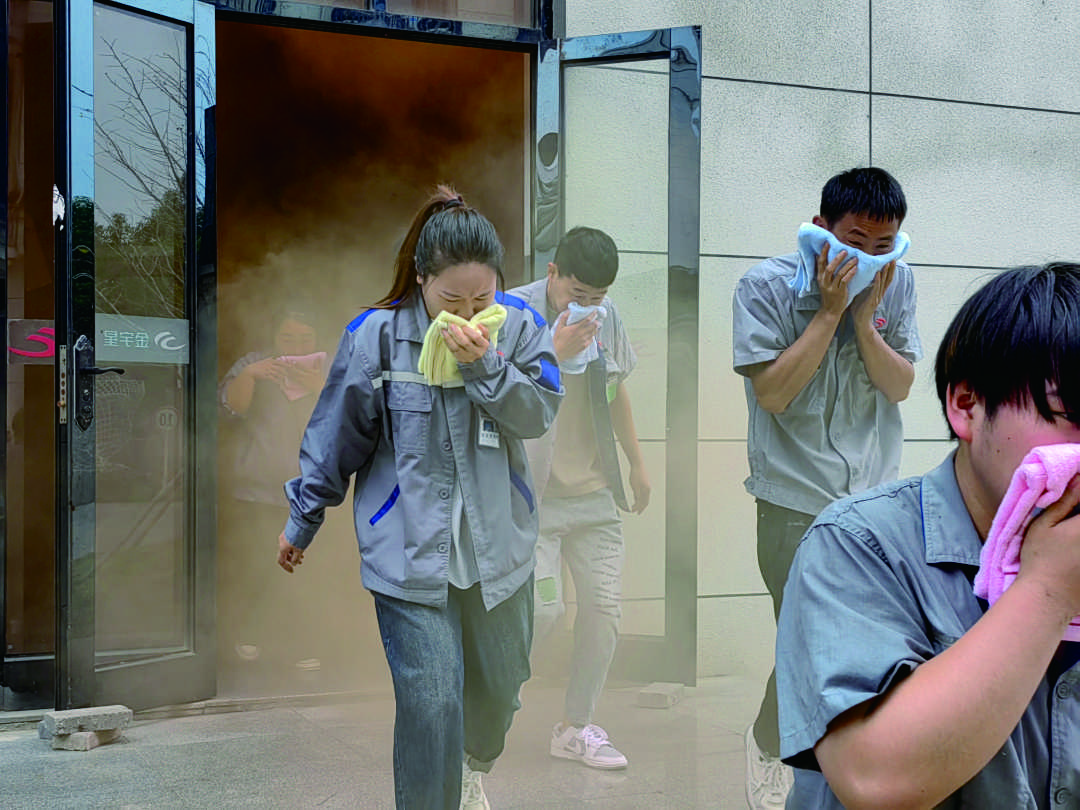 11月9日上午11時,園區內煙霧彌漫,警報聲響起。按照“安全第一、就近逃生”的疏散原則,各部門迅速按照緊急預案的疏散路線,拿起濕毛巾,捂住口鼻,彎腰低身,分樓層、分區域有秩序地撤離,快速疏散到戶外空曠處集合。各部門清點人數后,確定全體員工均成功撤離。